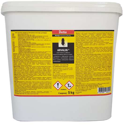 Arvalin – rodenticid, formulisan na bazi cink-fosfida i pšenice, za suzbijanje poljske voluharice (Microtus arvalis) u ratarskim i povrtarskim usevima, voćnjacima i vinogradima, ukrasnom bilju, šumama, travnjacima, livadama i pašnjacima.