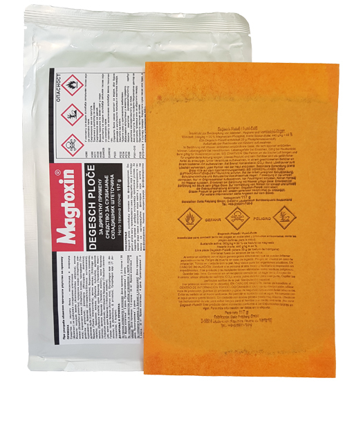 - Svaka Degesch ploča je pojedinačno zapakovana u gasno-nepropusnu, hermetički zatvorenu kesu od aluminijumske folije. Kada se ploča izvadi iz ove kese, zbog specijalnih sastajaka oslobađanje gasa fosfina će početi nakon kratkog ali dovoljnog perioda odlaganja, a sve u skladu sa najvišim bezbednosnim i zdravstvenim propisima.