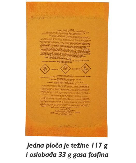 Ploča je dimenzija 280 x 170 mm, težine 117 g, oslobađa 33 g PH3 gasa.