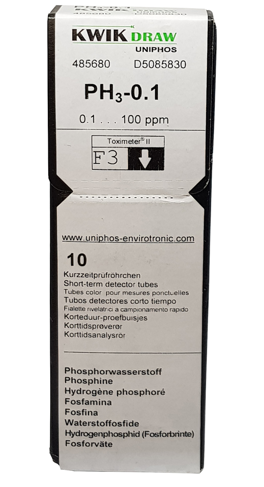 - Indikatorske cevčice PH3-0,1 se koristiti za otkrivanje mogućih curenja fosfina iz fumigiranog prostora i time se pomaže u bezbednosti i zaštiti radnika i životne sredine.